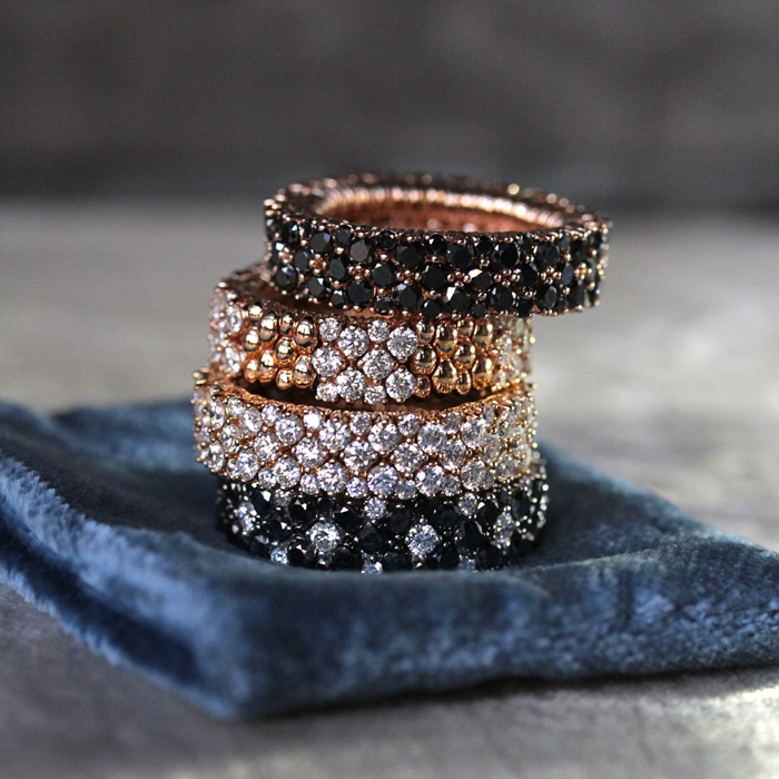 Sortijas “Colección Stretchable” en Oro de 18 kilates con diamantes blancos, negros y Brown