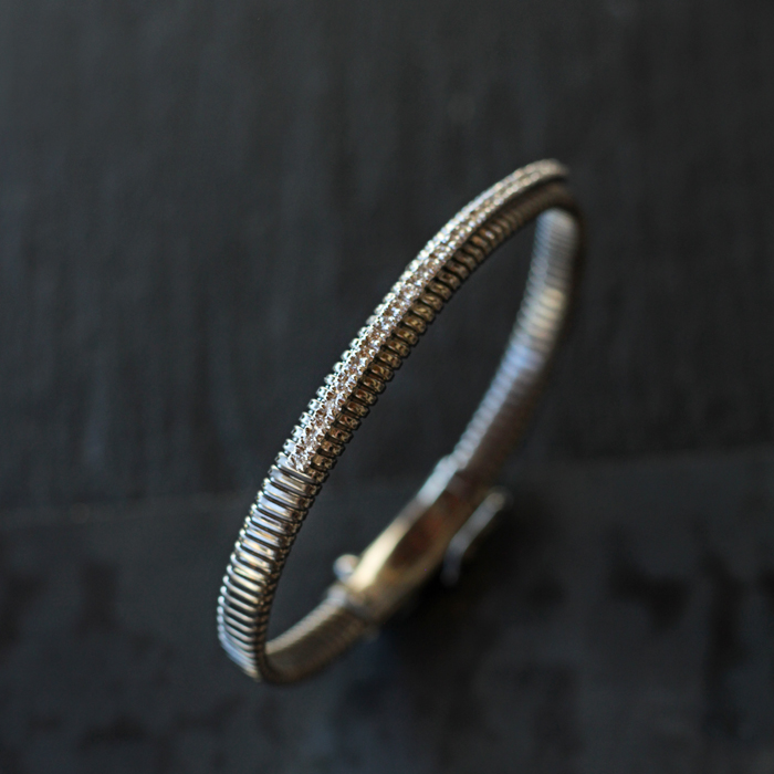 Polseres d’or rosa i blanc 18 kts amb diamants “stretchable” ànima elàstica de titani, sense tanca.