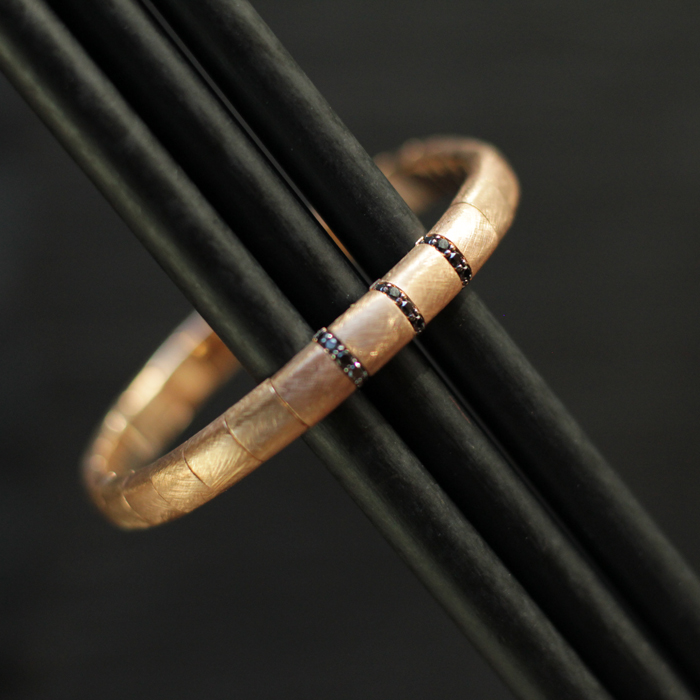 Polsera en or rosa de 18 kts amb diamants negres Stretchable